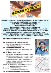 2025年2月22日(土)14時より社会福祉法人青丘社みんなの家3階で報告集会が行われました。次第は以下のとおりです。1.代表挨拶2.展示パネル制作チームからの報告 ①川崎の民族教育チーム ②「多文化共生をめざす川崎の高 […]
